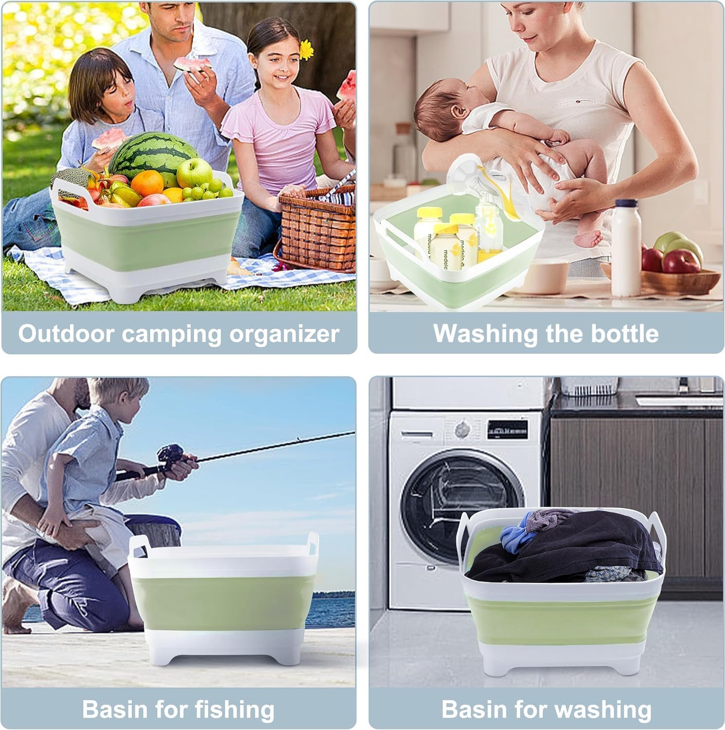 【Multifunctional】The collapsible washing basin is versatile for all your household tasks. It can use as a dish tub, RV sink, rinse basin, or storage basket. Perfect for camping, hiking, picnicking, BBQ, and campsite clean-up