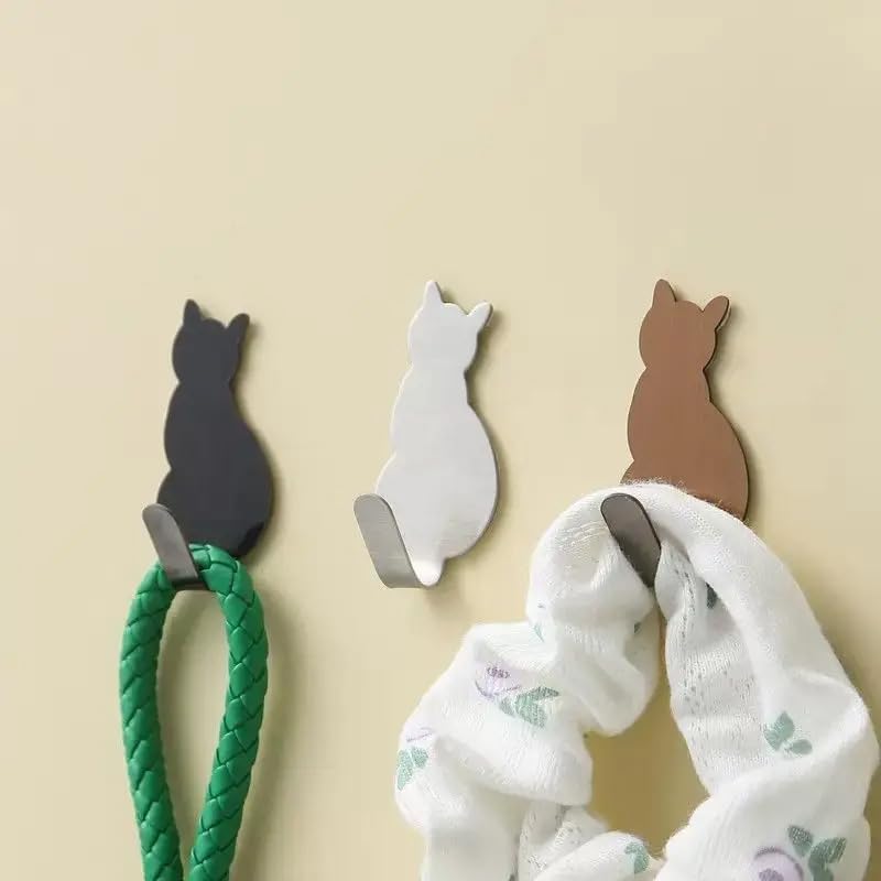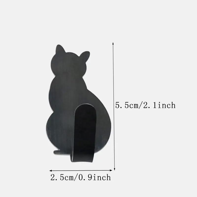 3pcs Cute Cat Shape Adhesive Wall Hooks – Stainless Steel Wall Sticker, Rustproof Key and Towel Hook – for Home, Kitchen, Bathroom – Ideal for Organizing & Storage, Black
