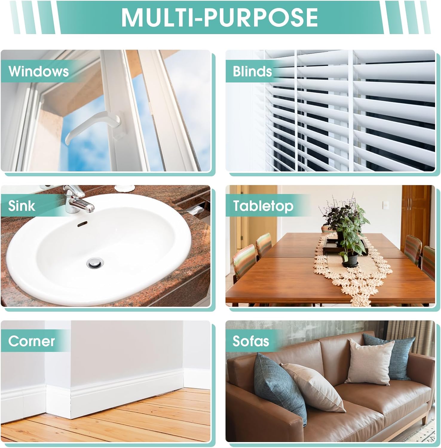 Ideal for cleaning blinds, faucets, glass, window sills, hair, etc.