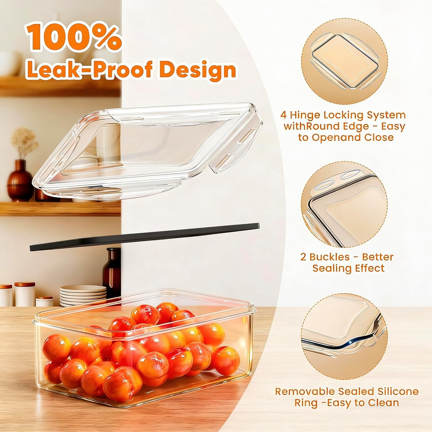 Leakproof & Airtight: Silicone strips + 4 latches; keeps food fresh, no fridge odors, secures liquids.