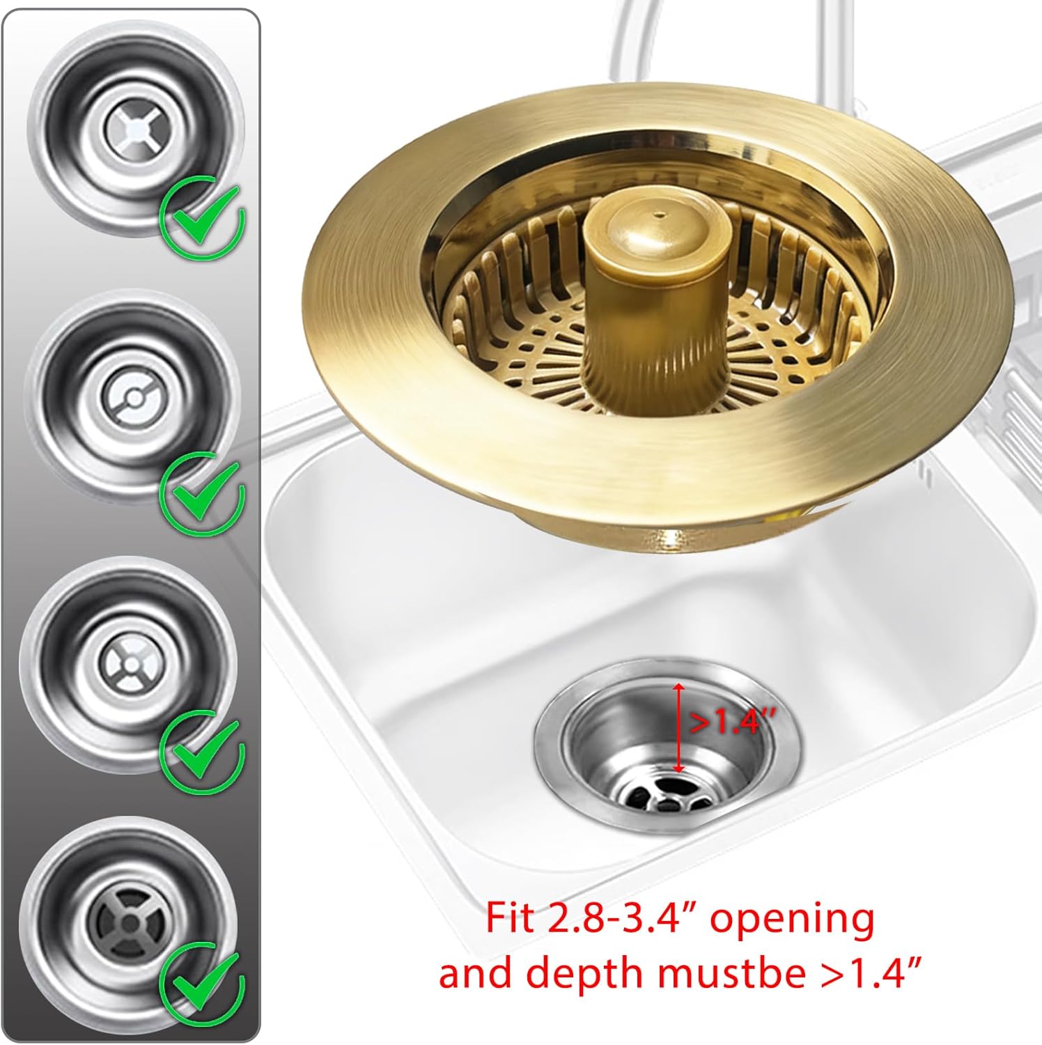 [Suitable for Standard Kitchen Sink Strainer] Sink strainer kitchen drain, is universal for the drain with opening 2.83-3.38 inches and depth greater than 1.4 in. Please measure the hole size before purchasing.