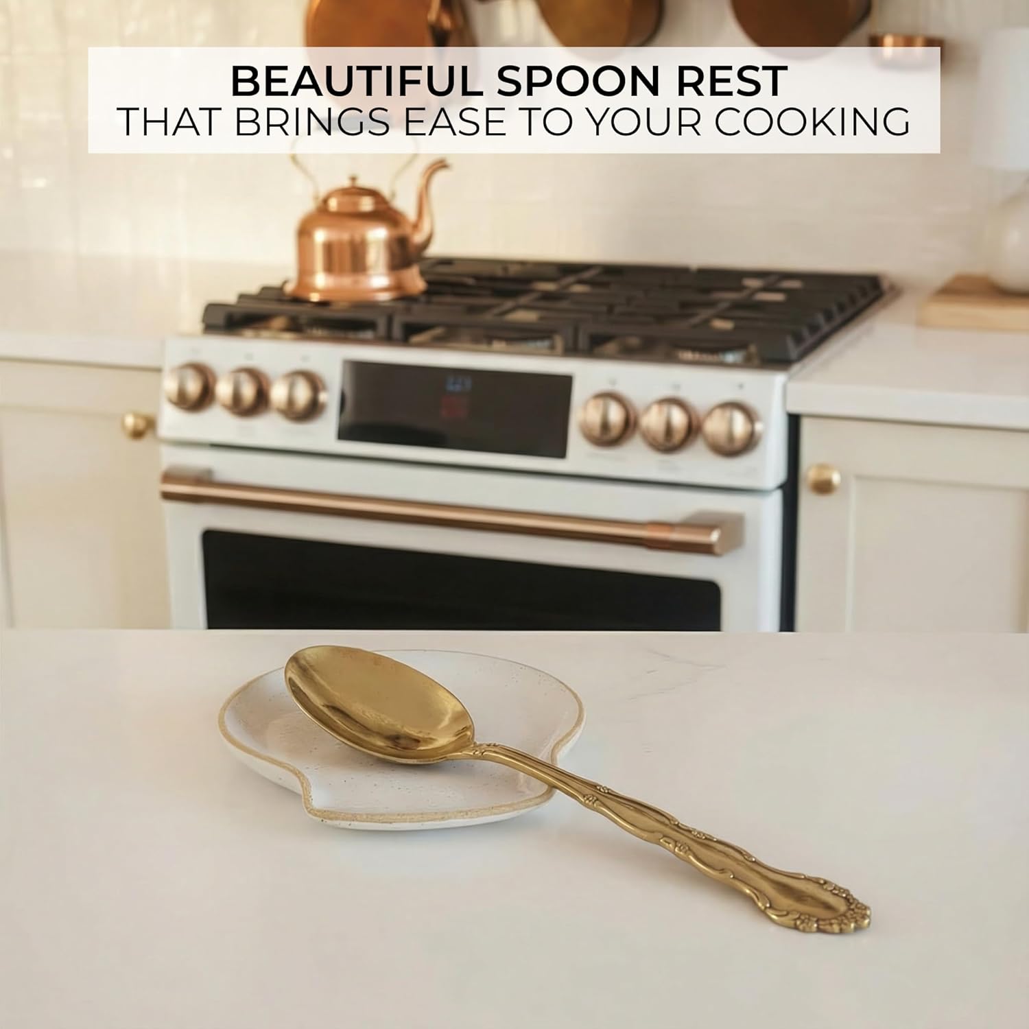 Smart Size, Maximum Convenience: Thoughtfully sized at 4.7×5.1×0.6”, the compact ceramic spoon rest fits perfectly on stovetops or prep areas. Raised edges keep drips contained, while the wide surface holds ladles, spatulas and all your favorite cooking tools