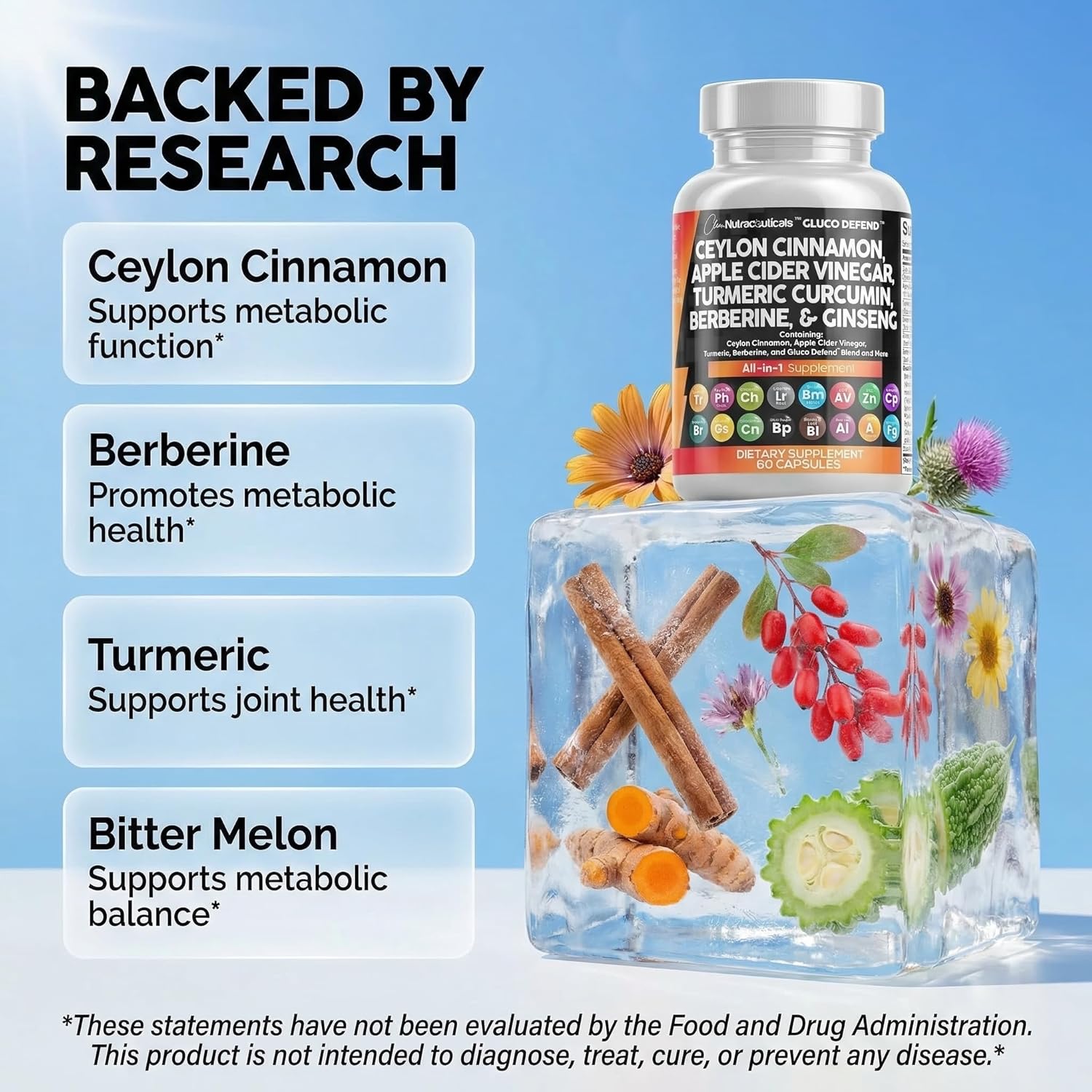 Introducing the Gluco Defend Cinnamon Supplements Blend – In addition to berberine with ceylon cinnamon, ACV With The Mother, berberine capsules and red panex ginseng pills, our formula also contains 11 additional powerhouse ingredients such as Bitter Melon, Milk Thistle, Gymnema Sylvestre, Ginger, Cayenne Pepper, and more! This is a powerful apple cider vinegar pills with the mother, cinnamon cyelon, and tumeric formula.