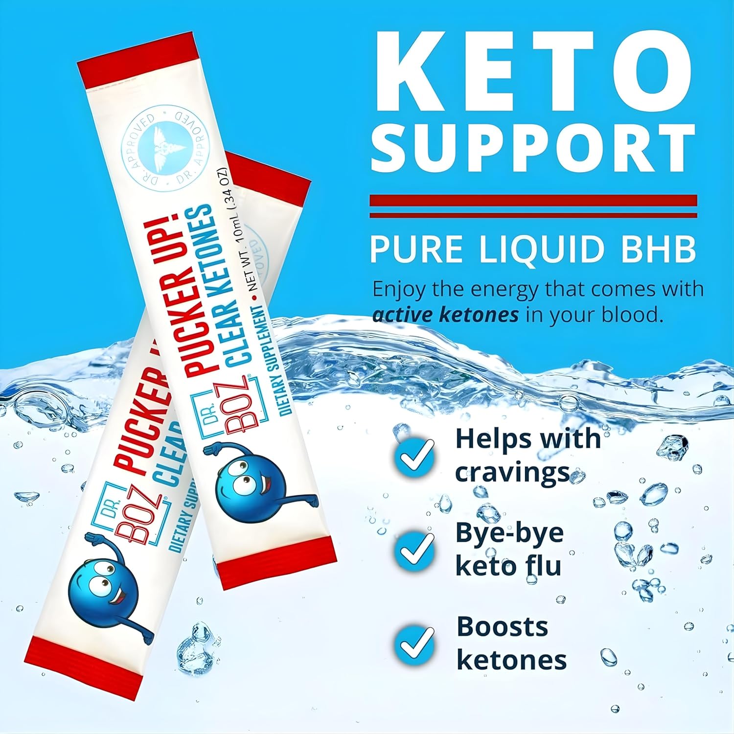 Dr. Boz – Pucker UP! Clear Ketones, 20 Packets – Pure Liquid BHB – Fast Acting Exogenous Ketones – Increase Energy & Clarity – Max Strength – Quality Tested – Made in USA – Keto Diet – 0.34oz (10ml)
