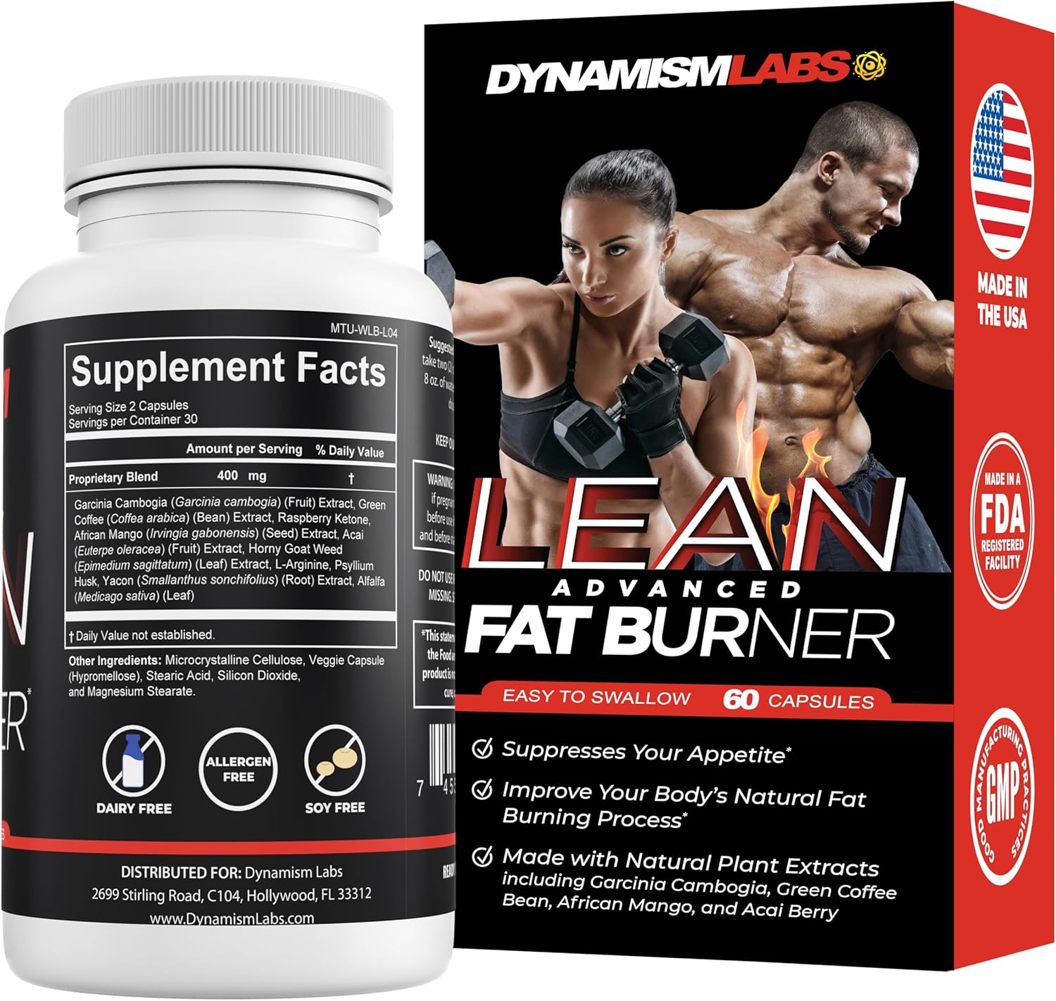 Dynamism Labs Lean Advanced Fat Burner | Garcinia Cambogia Extract, Green Tea Extract, Raspberry Ketone | Made in USA (60 Tablets)