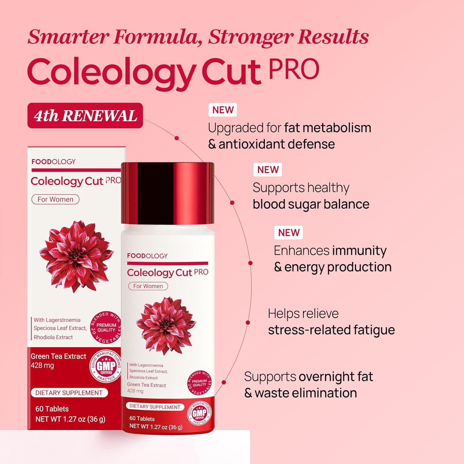 FOODOLOGY Coleology Cut PRO – Green Tea Extract 428mg Nighttime Fat Metabolism Support for Women, 9-in-1 Formula with Banaba Leaf & Rhodiola Rosea, Korean Dietary Supplement, 30 Day Supply