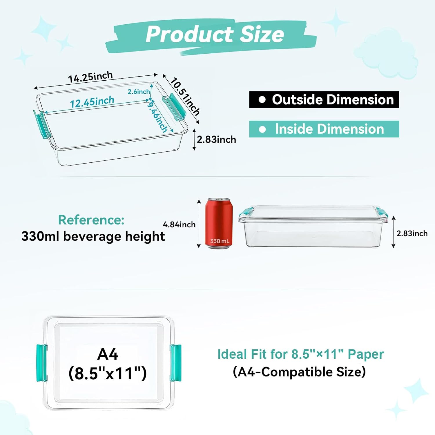 Multifunctional Craft Storage Box: These flat art box are ideal storage solutions for a variety of needs in your home, office, classroom, craft room, or children’s play area. They can hold standard A4 paper, folders, magazines, photos, scrapbooking materials, crayons, adhesives, stamps, kinetic sand, and other craft supplies.