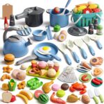 The Complete 22-Piece Kitchen Playset — This kids’ kitchen play food set includes pots, pans, utensils, a knife, a cutting board, and play food like eggs, corn, watermelon, fish, and vegetables. Your child can instantly become a little chef, experiencing the full cooking process from prep to “serving,” which sparks endless imaginative role-play