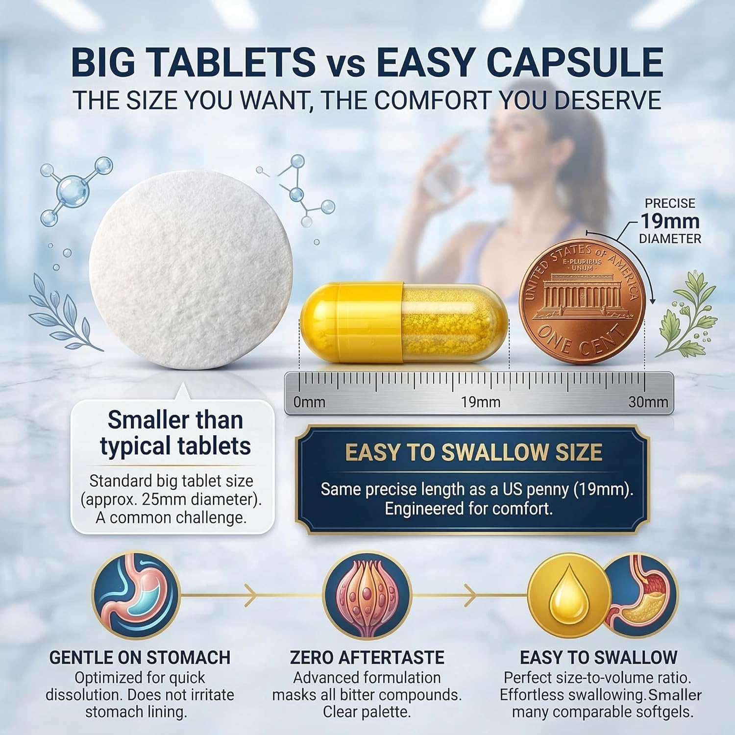🧪 𝟯𝗥𝗗-𝗣𝗔𝗥𝗧𝗬 𝗧𝗘𝗦𝗧𝗘𝗗, 𝗚𝗠𝗣 𝗖𝗘𝗥𝗧𝗜𝗙𝗜𝗘𝗗 & 𝗧𝗥𝗔𝗡𝗦𝗣𝗔𝗥𝗘𝗡𝗧 : We prioritize your safety. Manufactured in an FDA-registered and GMP-certified facility, every batch passes rigorous testing by independent ISO 17025 accredited labs. Our small, easy-to-swallow vegan capsules feature a 100% transparent label with no hidden proprietary blends.
