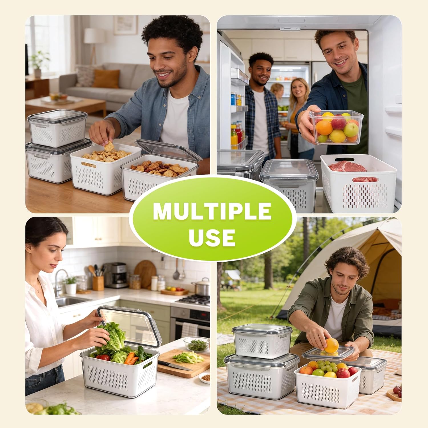 Each fruit containers has a colander basket that could be used in the container or separate, 5 different sizes are suitable for most foods, making kitchen life more convenient.