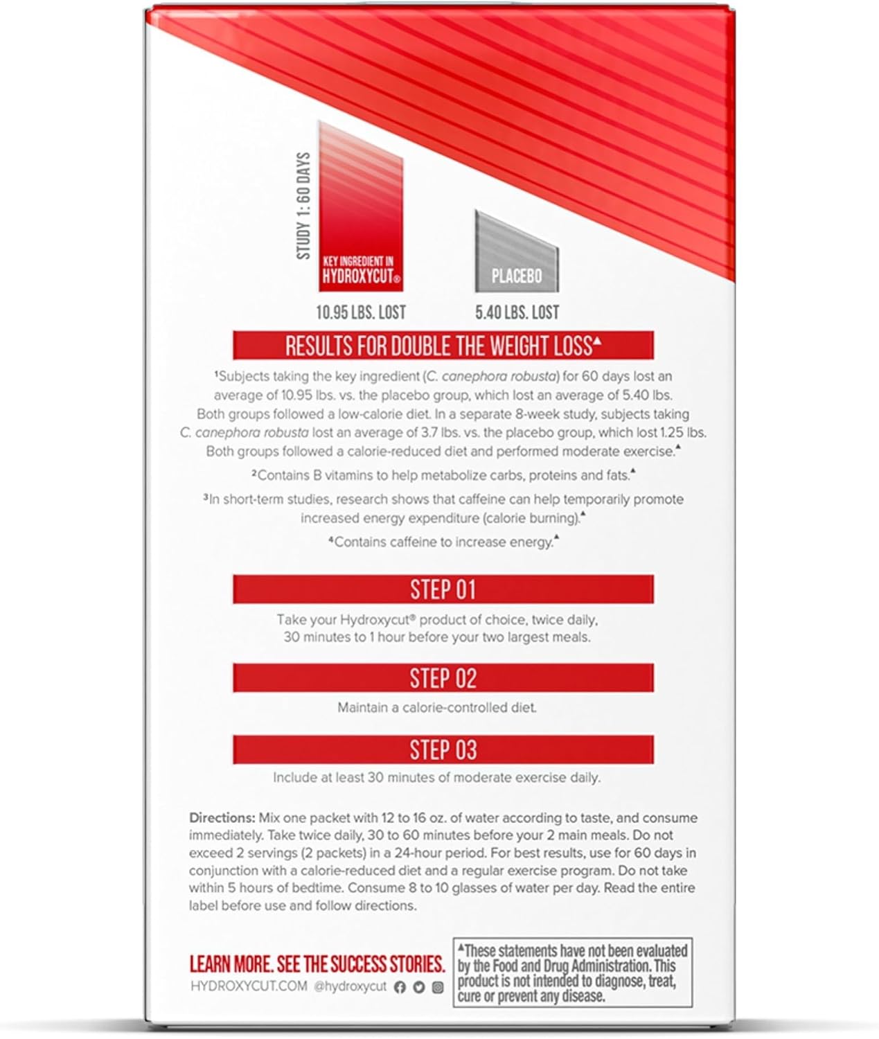 Anytime Convenience – Hydroxycut Drink Mixes have delicious fruity flavors and are perfect for on the go! Simply add one of the pouches to your water bottle and enjoy