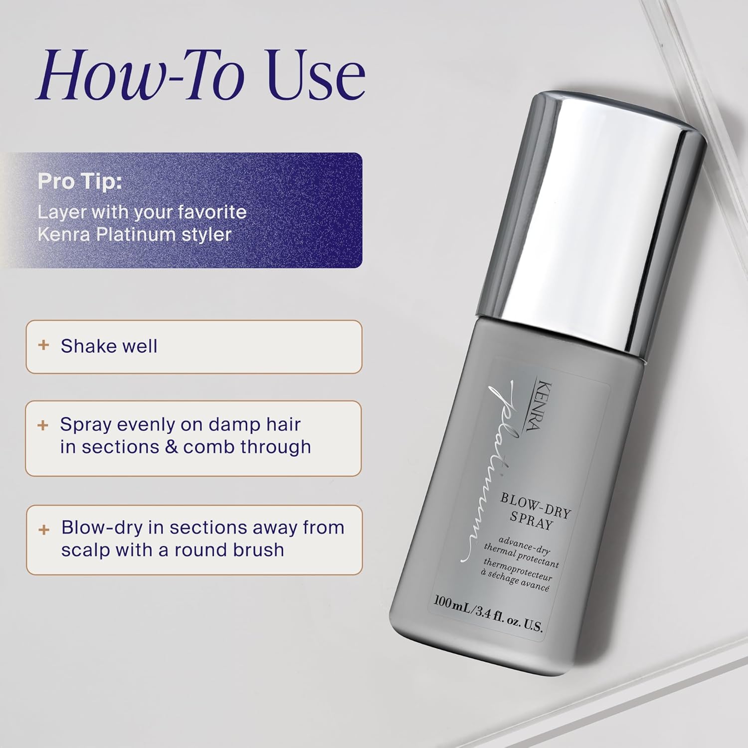 Blow-Dry Spray is recommended for damp hair before blow-drying. Hot tools up to 450°F (232°C) may be used afterwards.