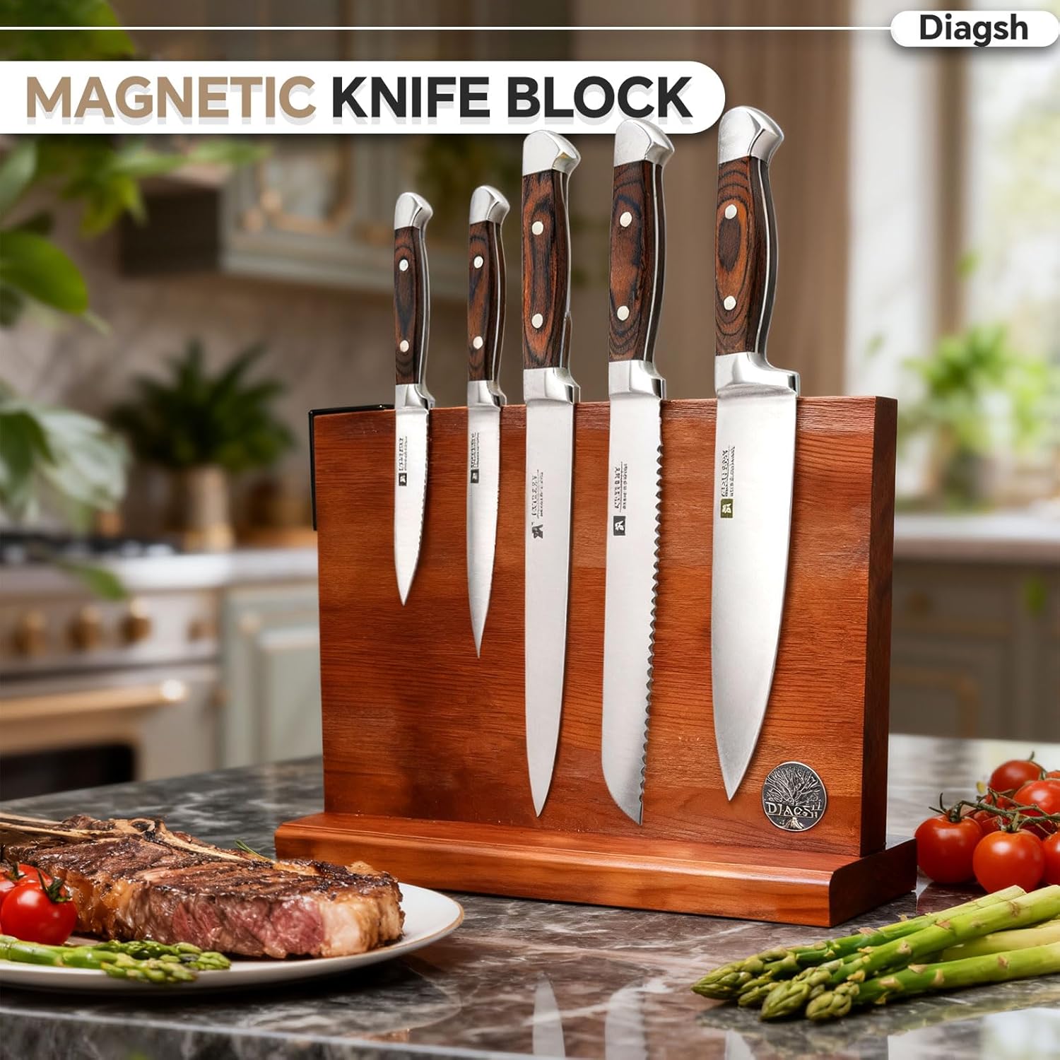 【Complete 7-Piece Knife Set】 Diagsh 7 set includes 5 essential kitchen knives plus a magnetic block—an everyday knife set for prep at home or in a pro kitchen.