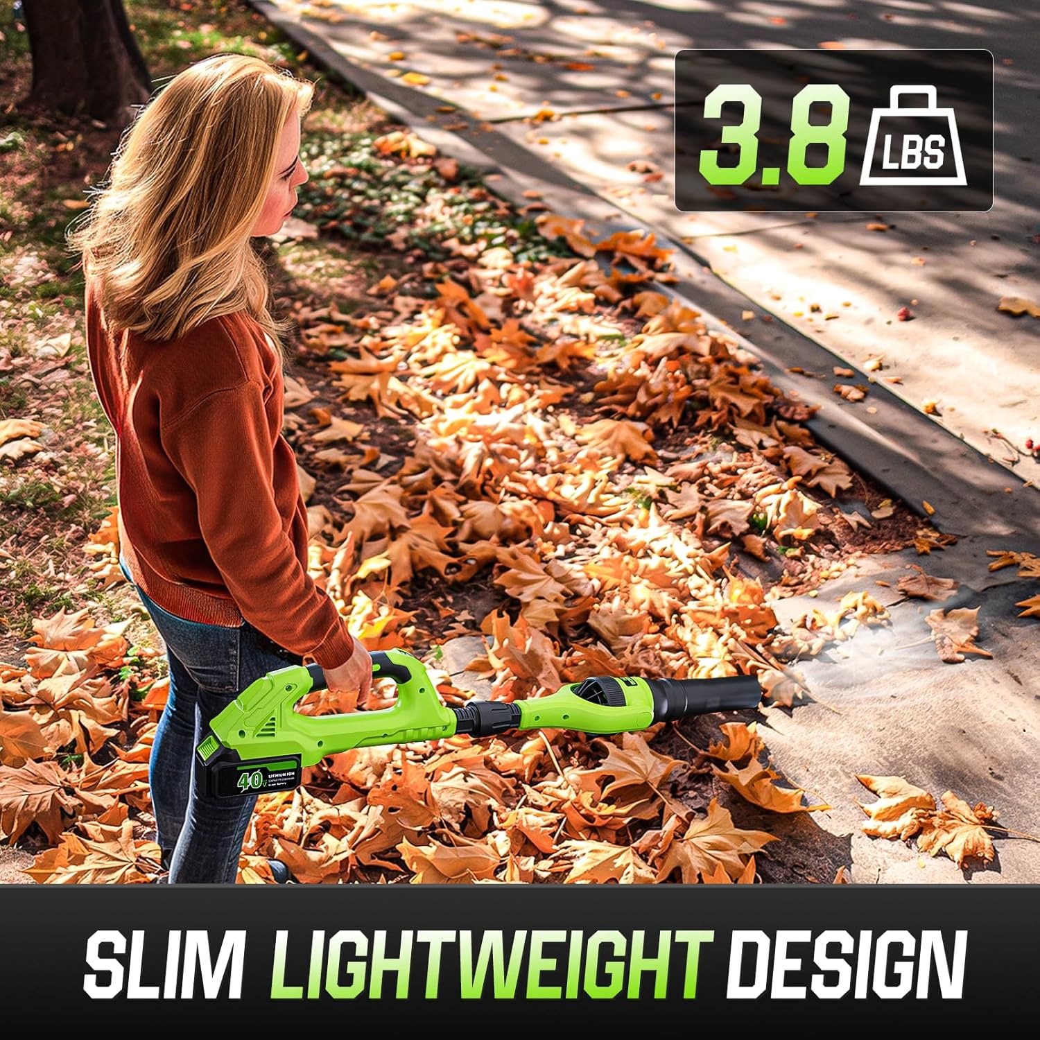 💡Extended Runtime with 40V 2.0Ah Lithium-Ion Battery: Our leaf blower comes with two 40V 2000mAh batteries, eliminating the need for mid-job recharging and saving you valuable time. Each battery provides up to 30 minutes of runtime, delivering powerful performance for extended periods. The combination of strong kinetic energy and prolonged working time makes yard work both time-efficient and effortless.