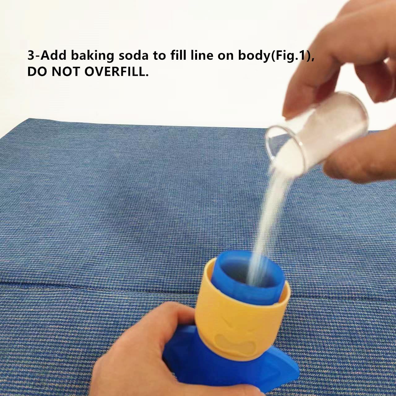 2, Add baking soda to fill line on body(Fig.1), DO NOT OVERFILL.