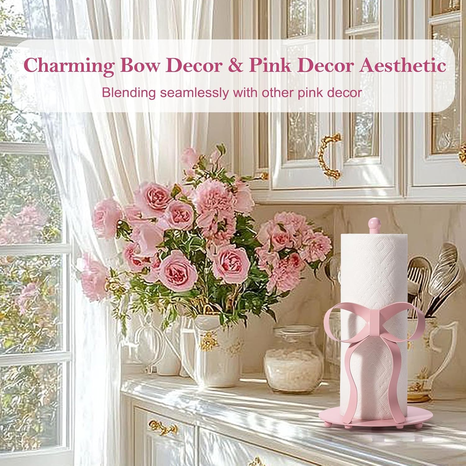 Exceptional Quality & Durability – Unlike common flat or printed bows, each pink coquette bow is carefully crafted by our experienced craftsmen in premium metal with a true 3D form. This kitchen paper towel holder weighs approximately 1.6 pounds, making it more substantial than most countertop metal holders. Enjoy hassle-free paper towel tearing without worrying about it tipping over!