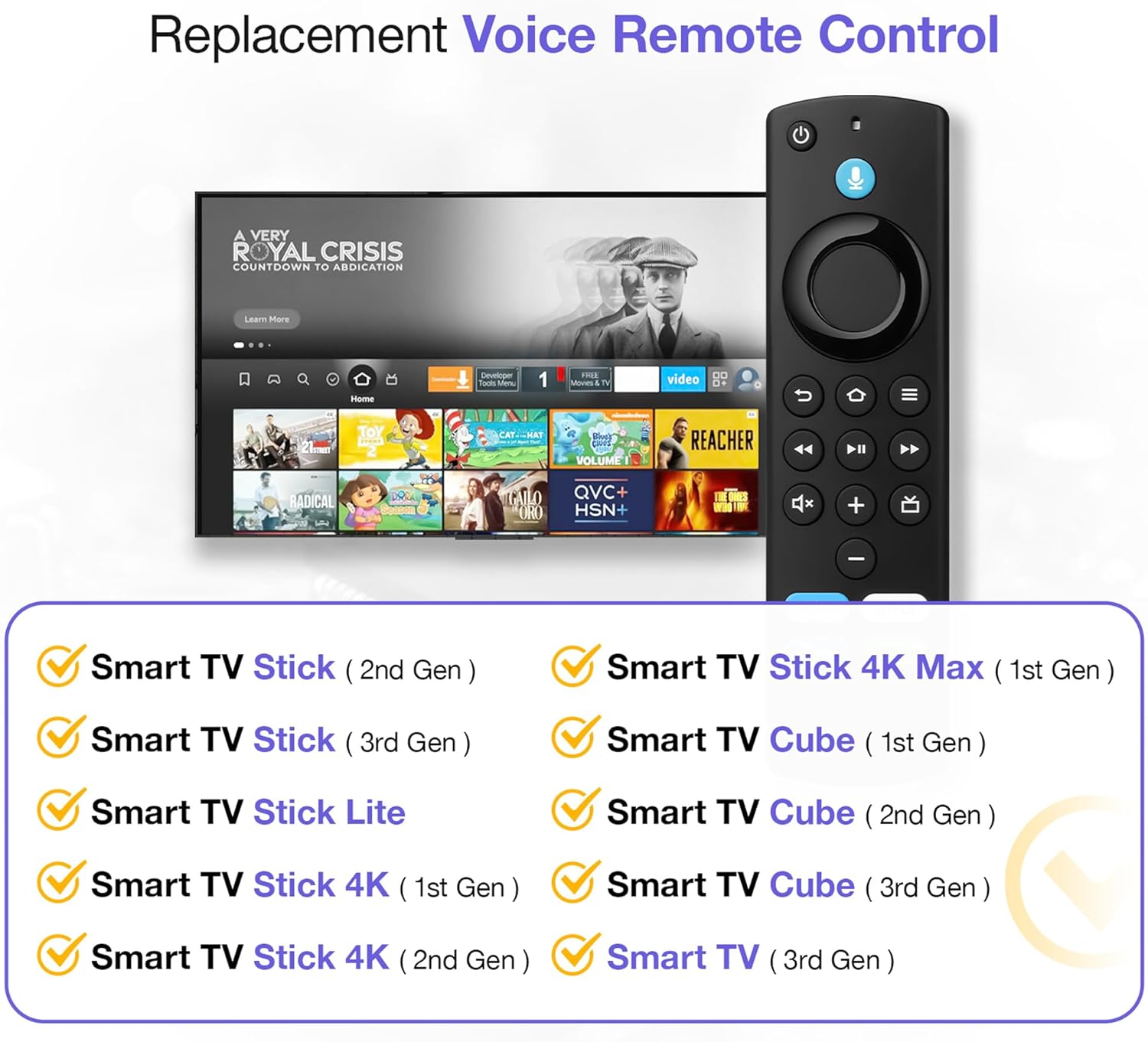 【COMPATIBLE WITH】:This Smart TVs Stick Remote fit for Smart TVs Stick Lite,fit for Smart TVs Stick 1st/2nd Gen 4K,fit for Smart TVs Stick 1st Gen 4K Max),fit for Smart TVs Stick (2nd/3rd Gen),fit for Smart TVs Cube (1st/2nd/3rd Gen),and fit for Smart TVs (3rd Gen),Please make sure your device model fit our remote before place an order