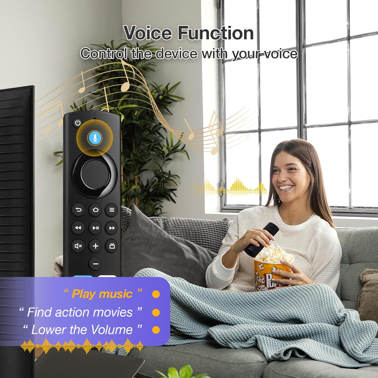 【 VOICE FUNCTION 】:Press and hold the voice command button on the remote control. Speak clearly into the microphone (” Turn on the TV “or” Search for action movies “). It’s that simple and convenient