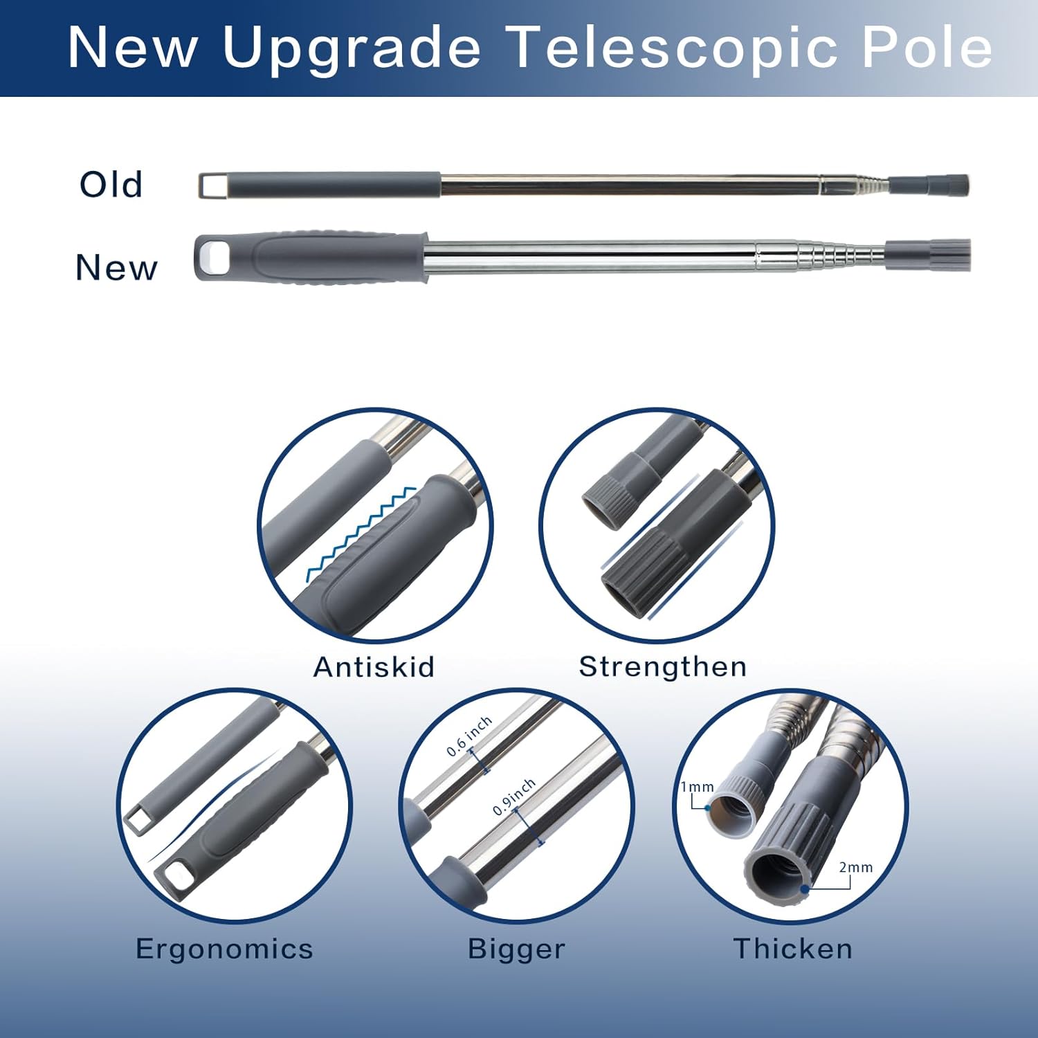 EXTEND YOUR REACH: Clean from ceilings to baseboards with our strong extension pole. Made of durable, lightweight stainless steel, it adjusts from 15.7 to 74 inches. No more stepping on ladders or crouching on the ground