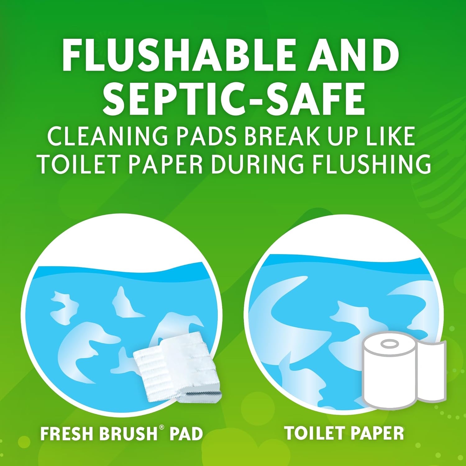 Scrubbing Bubbles Fresh Brush Starter Kit is a toilet cleaning system with flushable pads for a convenient clean. This complete, citrus-scented bathroom cleaner and hard water toilet stain remover kit includes a 19-inch toilet wand, 4 toilet brush pads and a stand to help you do away with all the unpleasantries of toilet cleaning. Each toilet pad attaches easily to the wand and can be released with one button, allowing you to thoroughly clean the bowl including under the rim. All you have to do is immerse the pad in the toilet water, scrub and flush the dirty pad when finished. Easy-peasy cleaning! Total bowl cleaning and a brush you can flush. That’s cleaning reinvented. Use Scrubbing Bubbles Toilet Bowl Cleaner and Fresh Brush Starter Kit to get your toilet clean. And for an even deeper clean, use Scrubbing Bubbles Fresh Brush Heavy Duty Non-Flushable Pad Refills.
