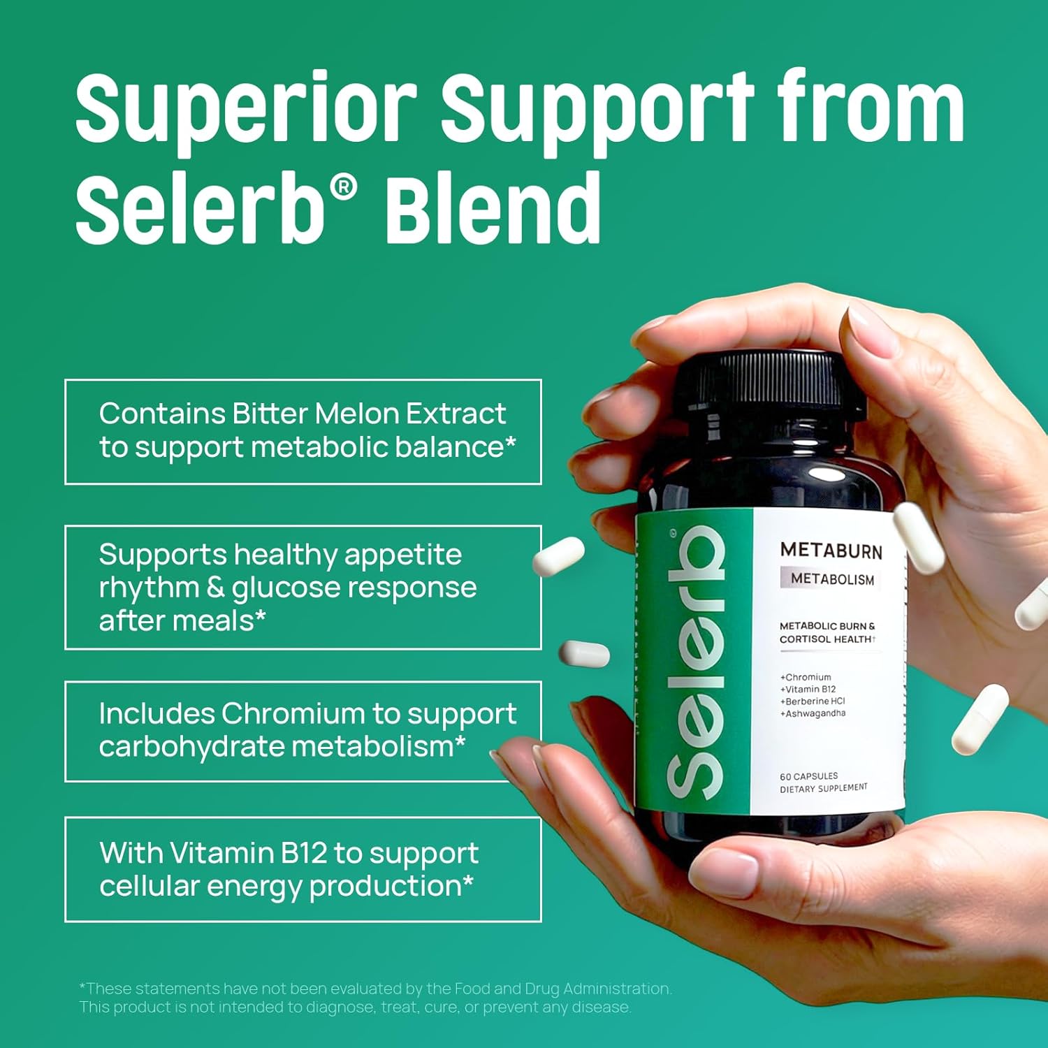Selerb Metaburn Weight Loss Pills for Women & Men – Appetite Suppressant & Fat Burner, Metabolism Support Weight Loss Supplement with Berberine, Chromium, Green Tea & B12 – 60 Capsules