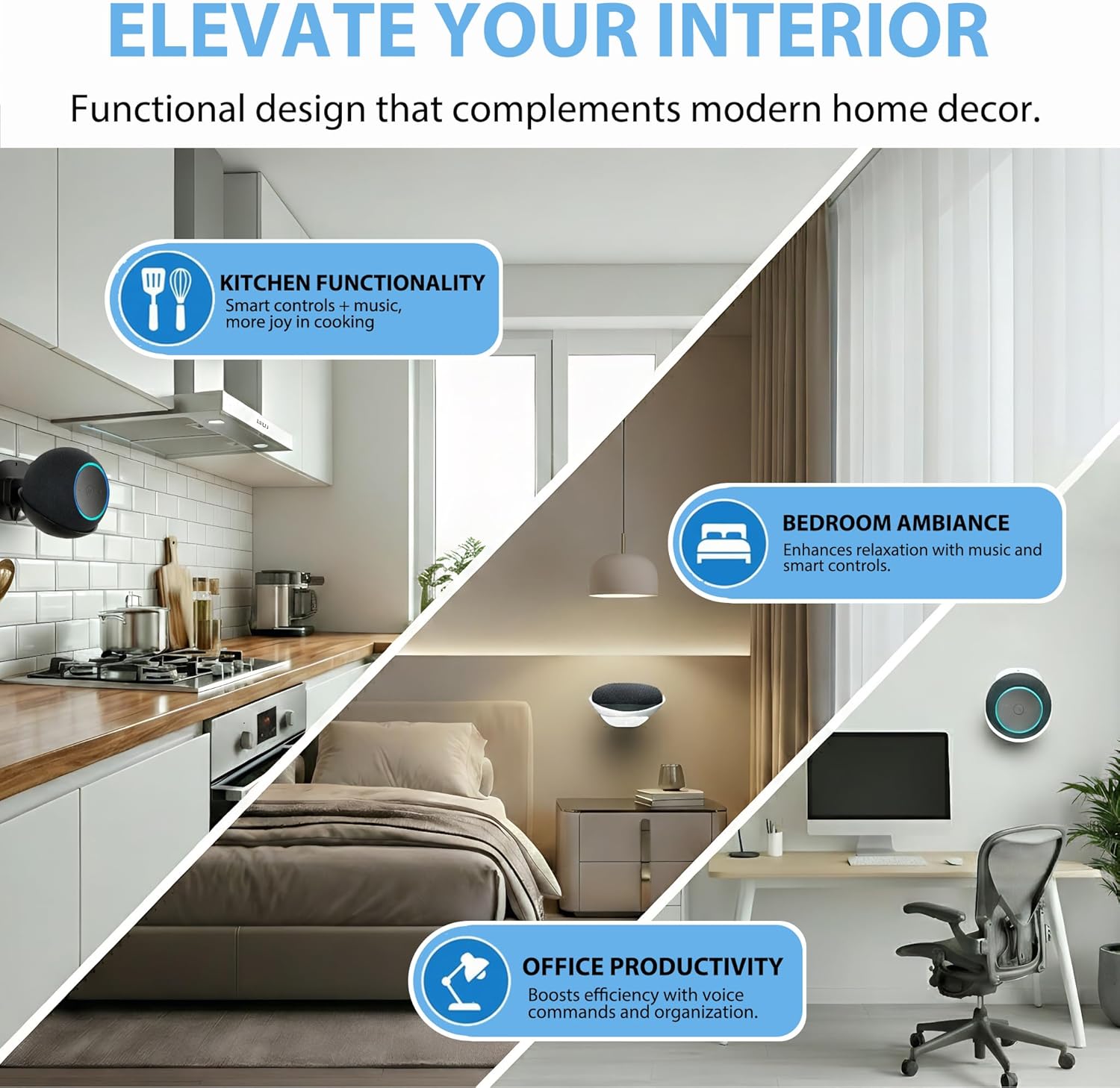 Versatile, Universal Holder for Your Entire Smart Home Ecosystem: One mount rules them all. This universal holder is engineered to securely cradle Echo Dot Max, HomePod Mini, Echo Pop, and Google Nest Mini, offering a versatile and tidy solution to organize your smart home devices.