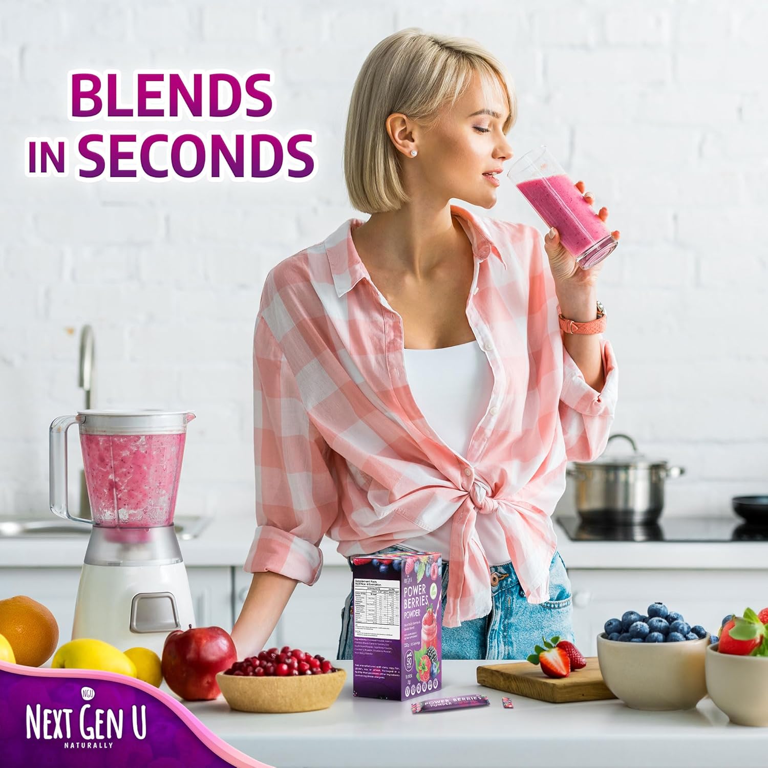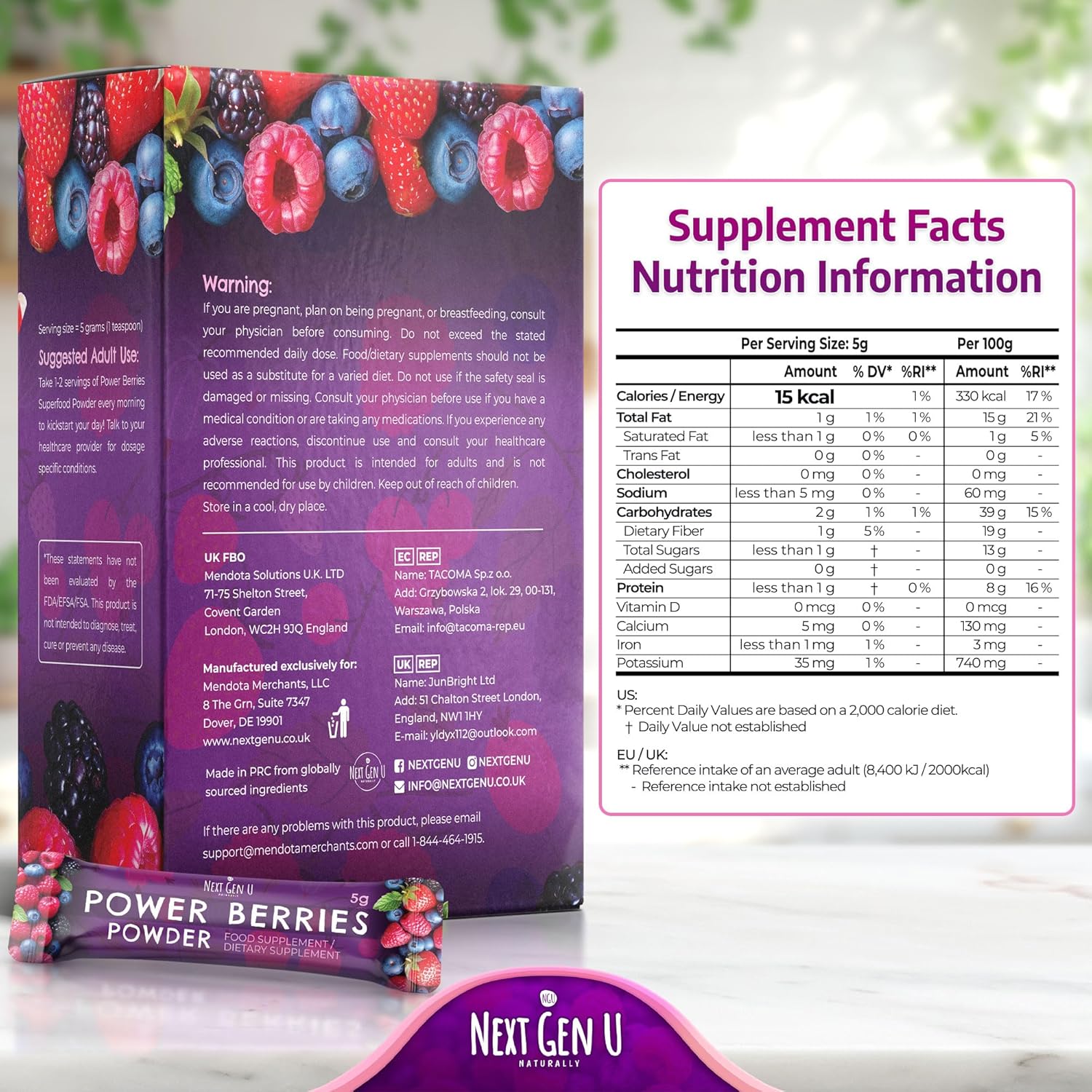 Super Berry Powder – 5g Travel Sticks, 50 Packets Individually Wrapped – Immune Support – Food Supplement – Superfood Berries – Smoothie Mix for Shakes – Healthy Boost for Detox Juice – by NextGenU