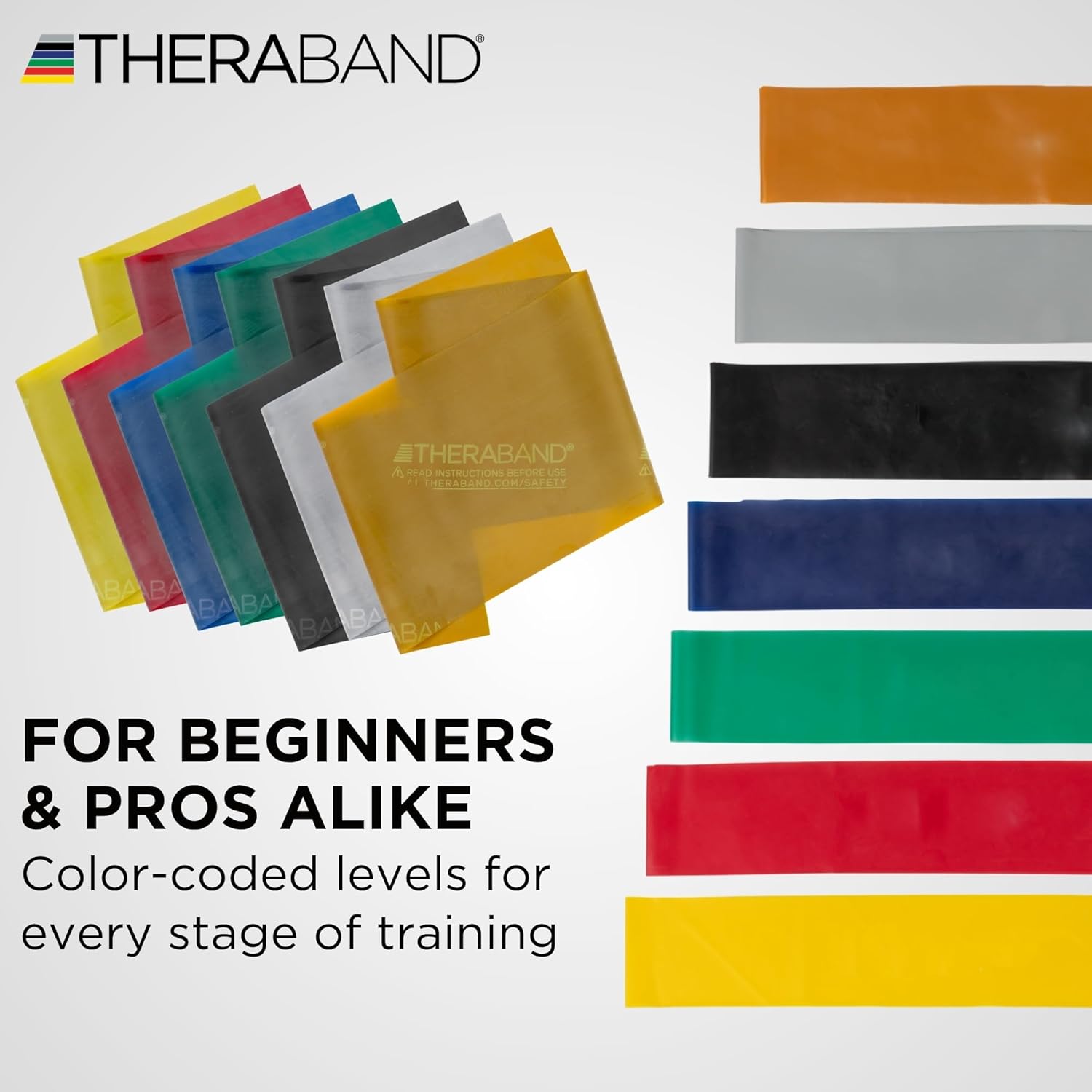 THERABAND Professional Latex Resistance Bands are premium-quality bands used by professionals during strength training, physical therapy, occupational therapy, and rehabilitation. Proper use of the Progressive Resistance can improve strength, range of motion, and flexibility. As you progress and build strength, increase the resistance by moving to the next level of the color-coded system.