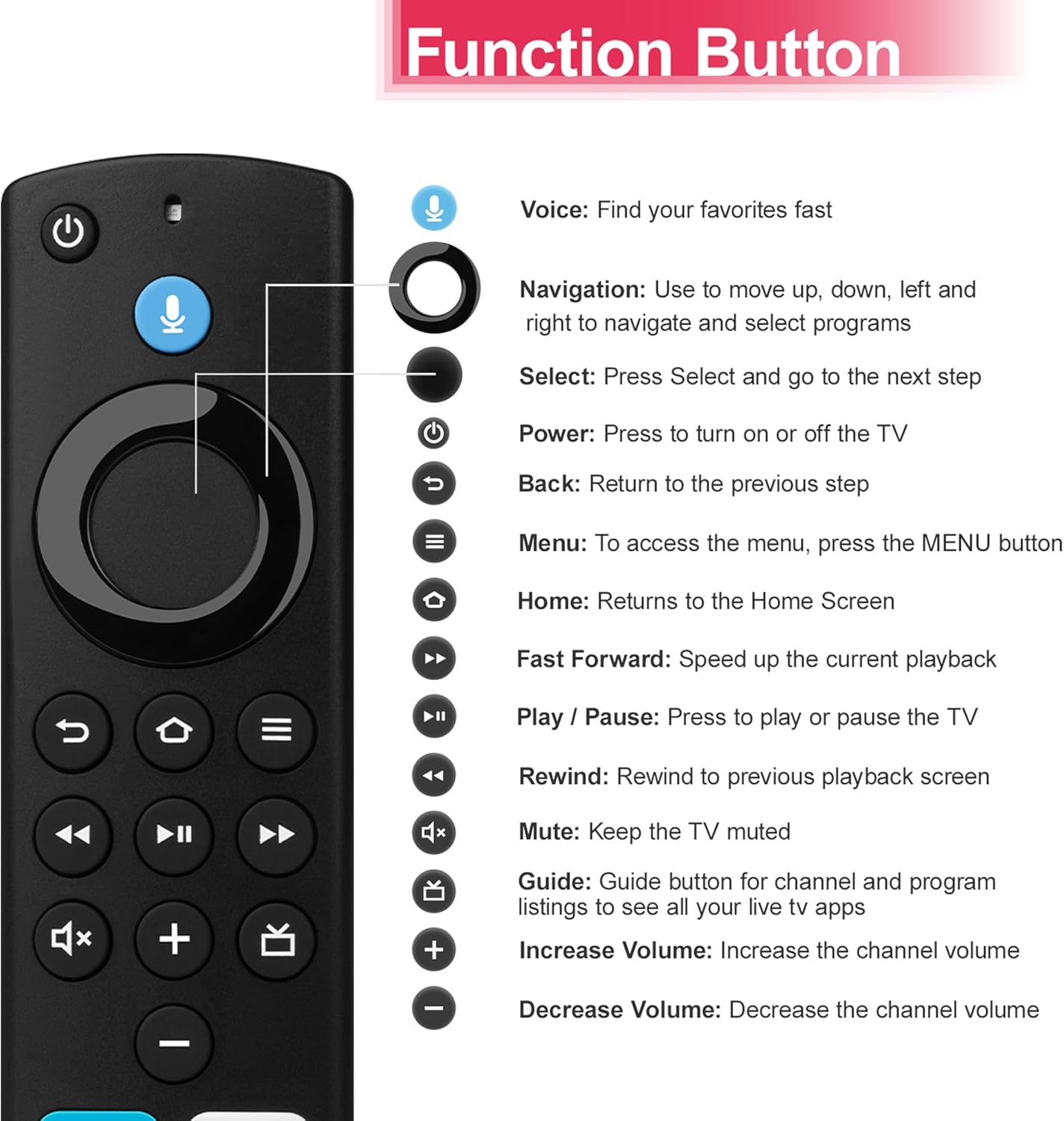 Applicable Streaming Devices and TV Models: Remote replacement for TV stick 4K(1st Gen/ 2nd Gen), TV Stick 4K Max(1st Gen/ 2nd Gen), TV stick(2nd Gen/ 3rd Gen), TV Stick Lite, TV Stick HD, TV Cube(1st Gen/ 2nd Gen/ 3rd Gen), 3rd Gen Smart TVs