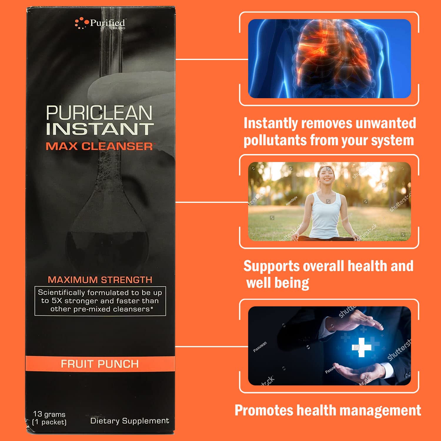 Super Clean and Powerful: Puriclean Instant Max Cleanser is a premium, extra strength detox powder that provides a super clean, 5X stronger body detox. Perfect for heavy toxins providing a quick system flush detox.
