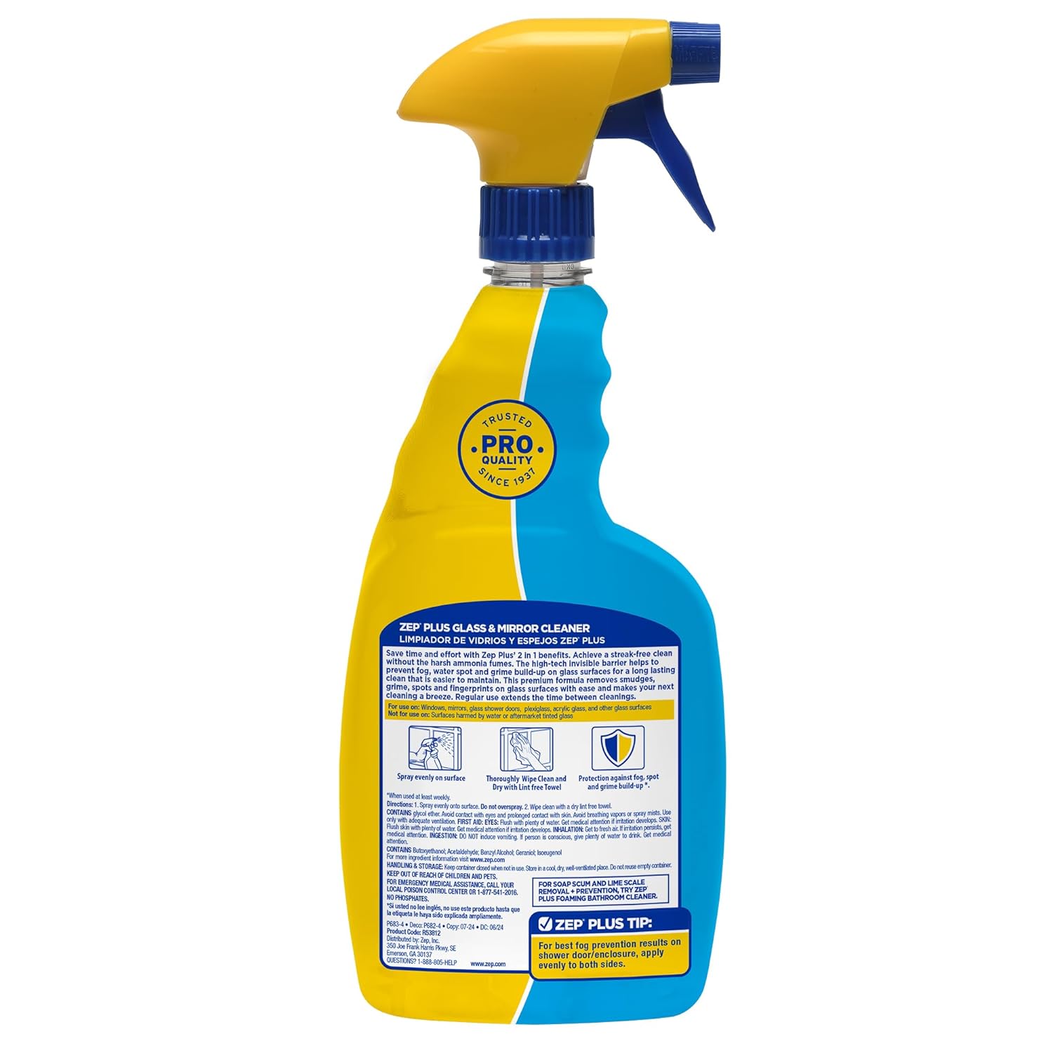 Zep Plus Glass & Mirror Foaming Cleaner is an ammonia-free 2-in-1 foaming spray that cleans and helps protect glass and mirror surfaces. It dissolves fingerprints, smudges, and grime on contact and leaves a protective barrier that helps prevent mirror fogging and repel water spots — keeping mirrors and shower glass cleaner for longer after each use. The Blue Microfiber Rag is a soft, reusable, lint-free cloth well-suited for buffing glass and mirror surfaces. Used after applying the foaming cleaner, it helps produce a clear, streak-free finish on bathroom mirrors, windows, and shower glass doors. Together, this combination makes mirror and glass cleaning more effective — the foaming cleaner dissolves smudges and helps prevent fogging while the microfiber rag delivers a polished, lint-free buff for crystal-clear results.